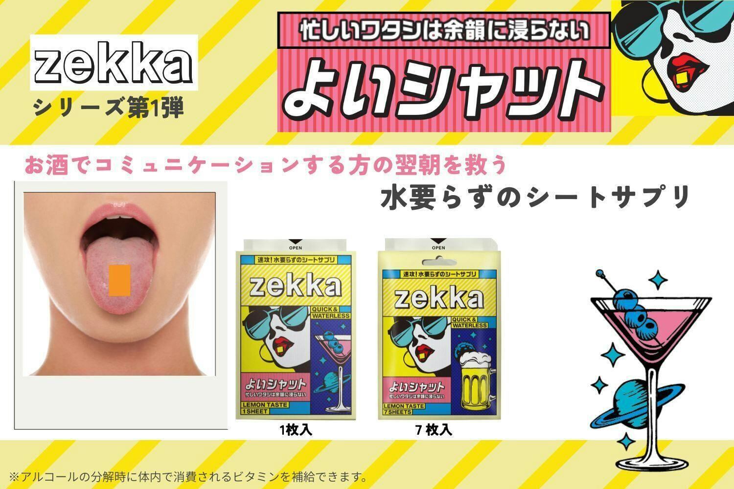 薄く持ち運びも簡単、水も不要な次世代シート型サプリzekka。