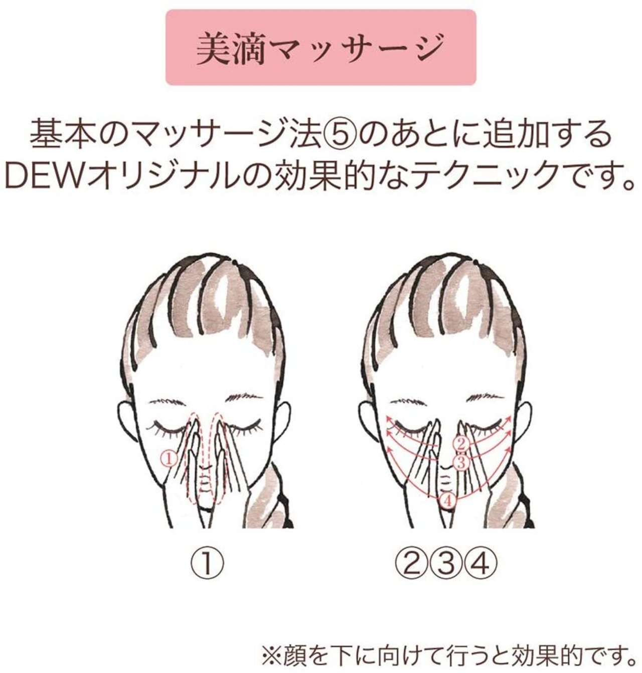 ●マッサージのあとは、化粧水や乳液などいつものお手入れでお肌を整えてください。