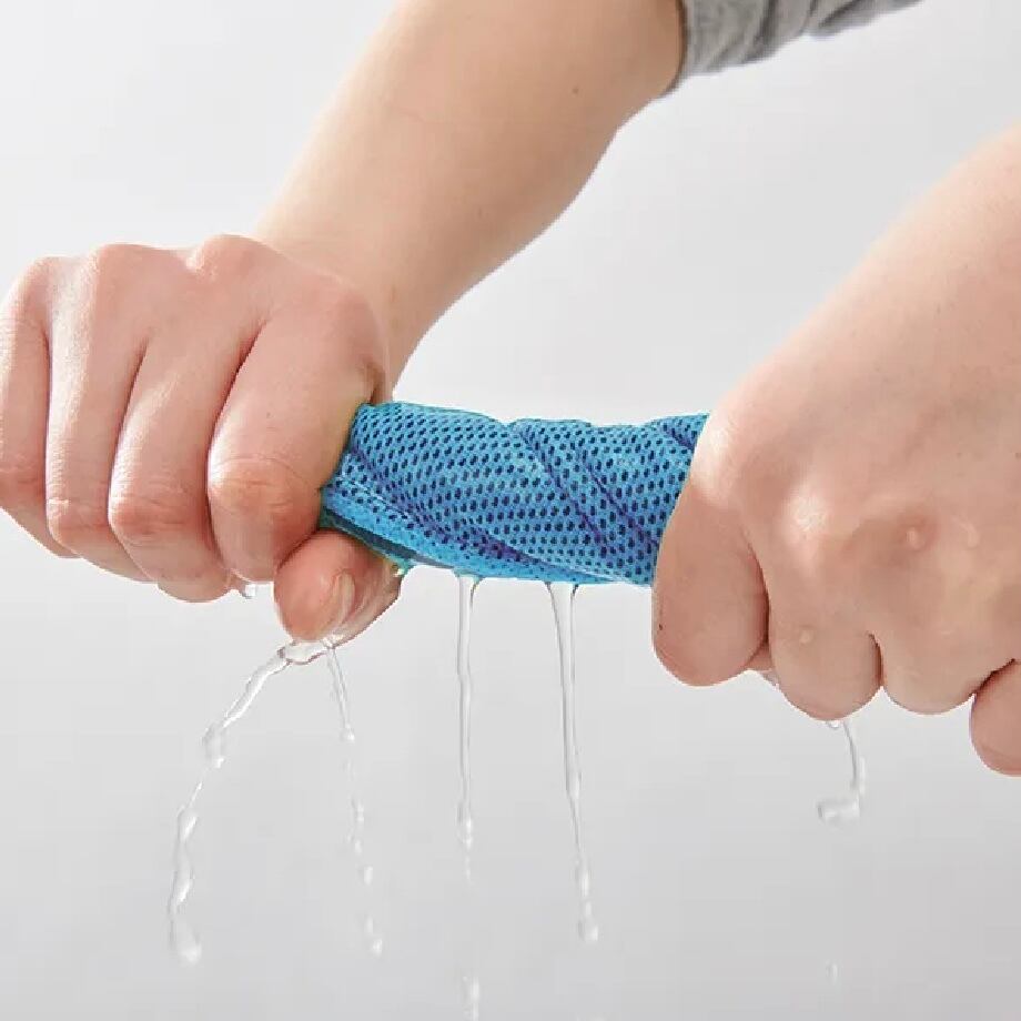 水で濡らしたタオルから水分が蒸発するときに周囲の熱を奪い、ひんやりとした涼感を感じられます。
