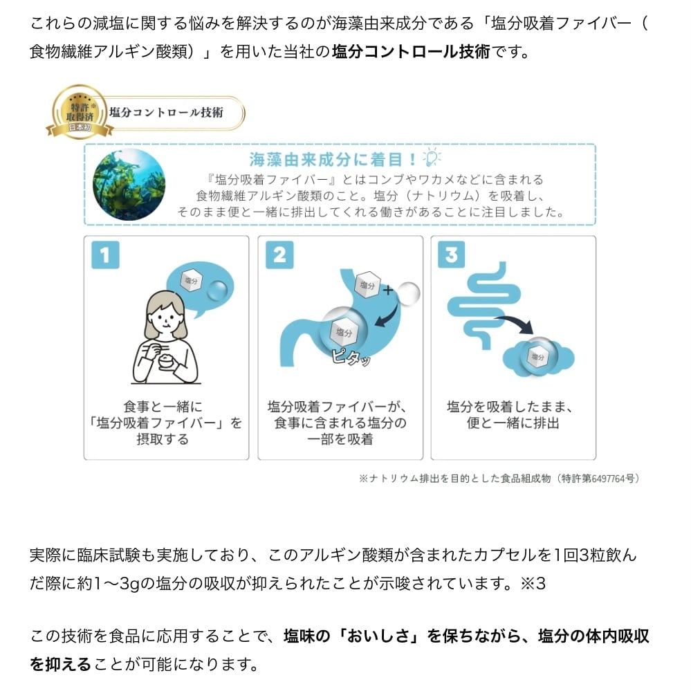 ◇アルギン酸が食事に含まれる塩分をカット。