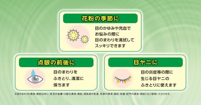 ⚫︎花粉の季節に…目のかゆみや充血でお悩みの際に目のまわりを清拭してスッキリできます。