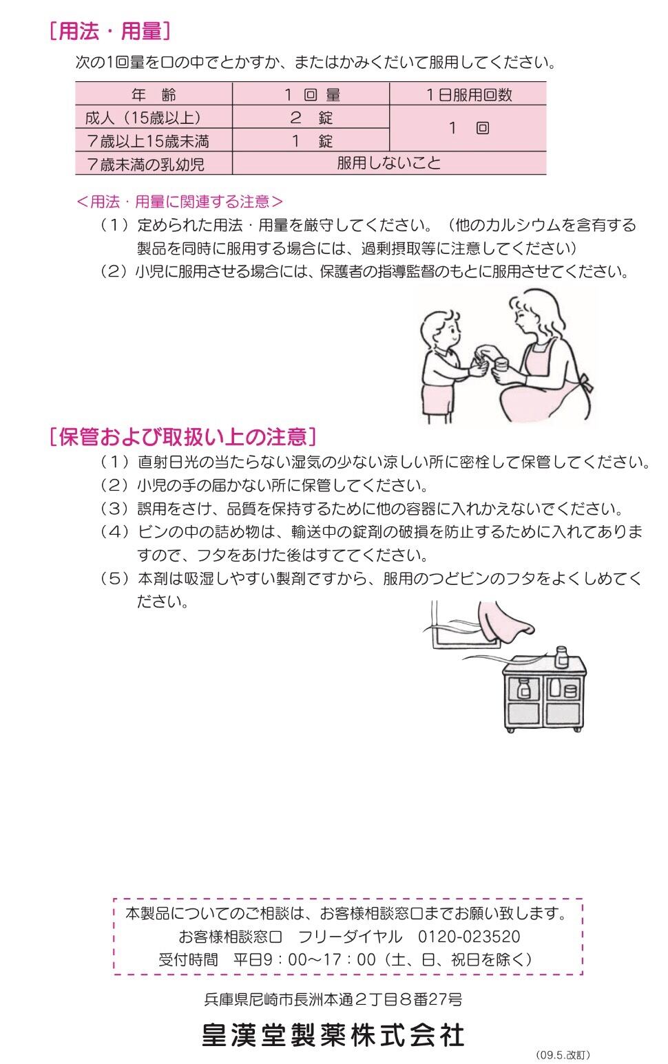 ※定められた用法・用量を厳守してください。(他のカルシウムを含有する製品を同時に服用する場合には,過剰摂取等に注意してください)