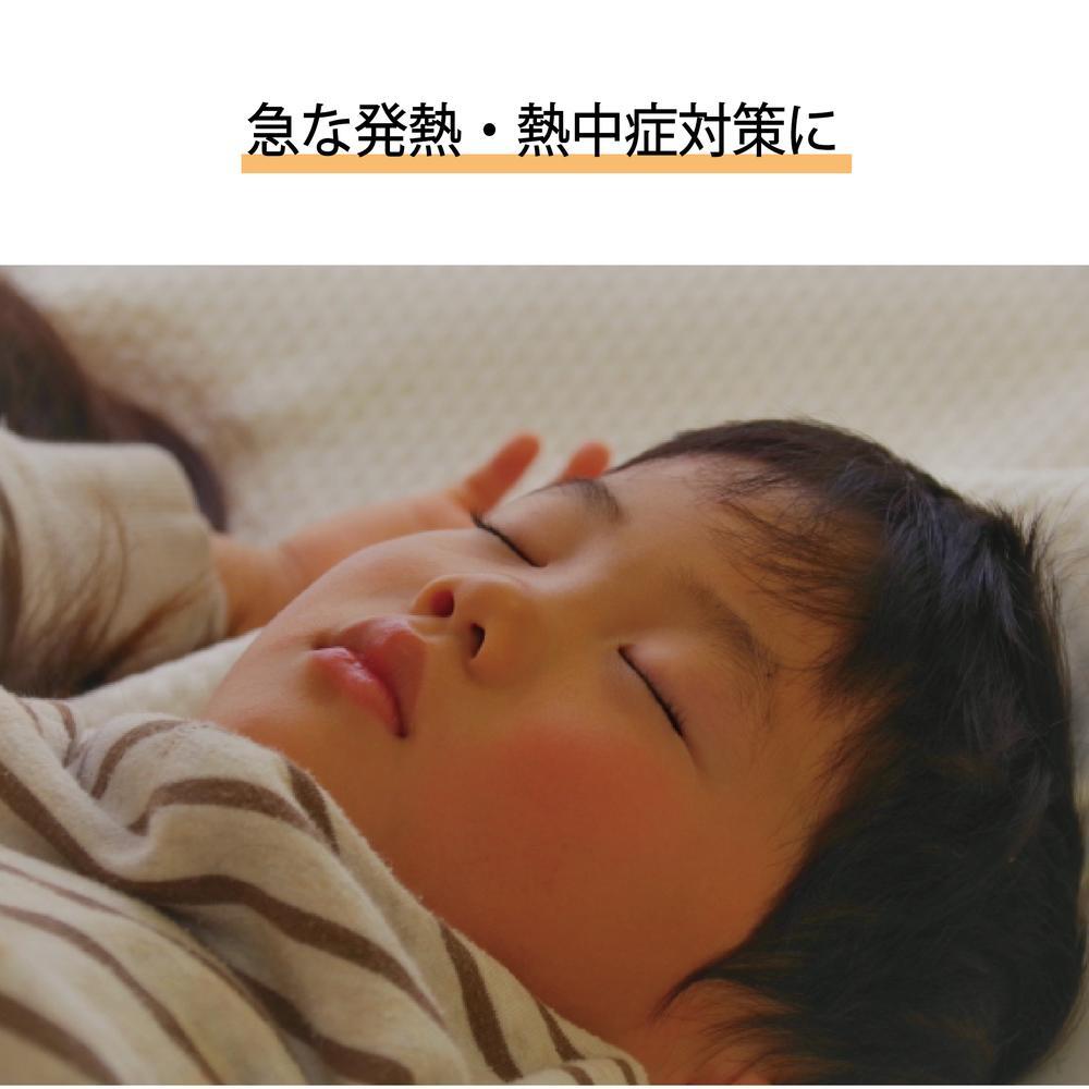○お子さまのおでこにピッタリ密着する高分子ジェル採用で、動きの多いお子さまに最適です。