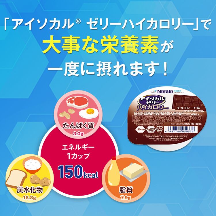 ・「アイソカル ゼリーハイカロリー」は飲み込みに配慮したゼリータイプ。
