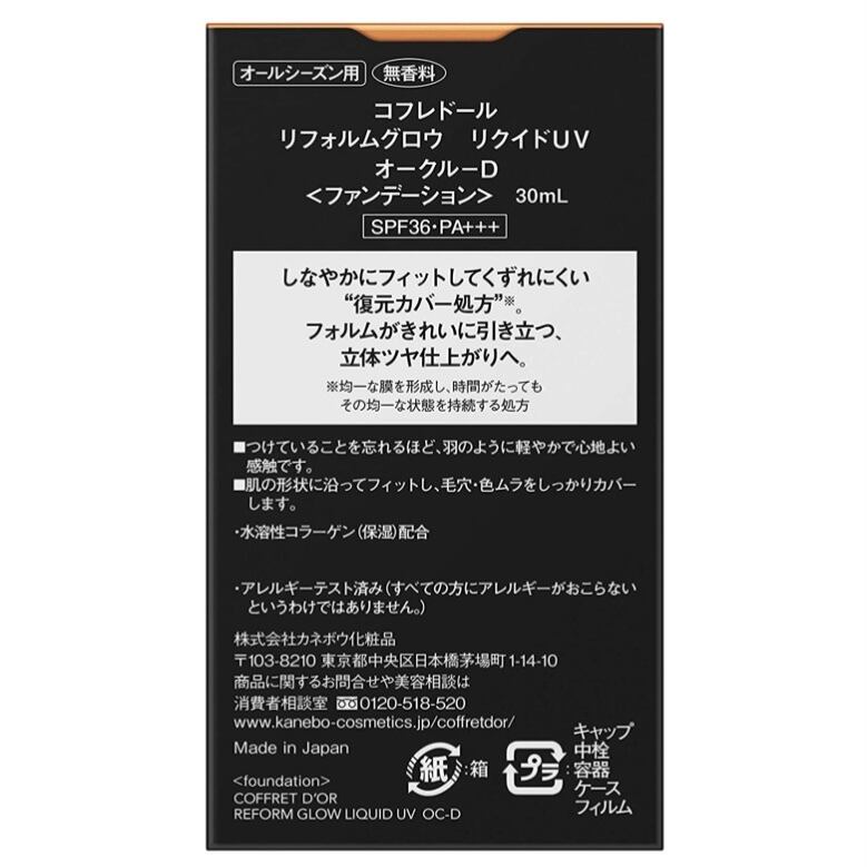 ④ Kanebo コフレドール リフォルムグロウ リクイドUV オークル-D 30mL ★カネボウ特製スポンジ付きファンデーションSPF36・PA+++
