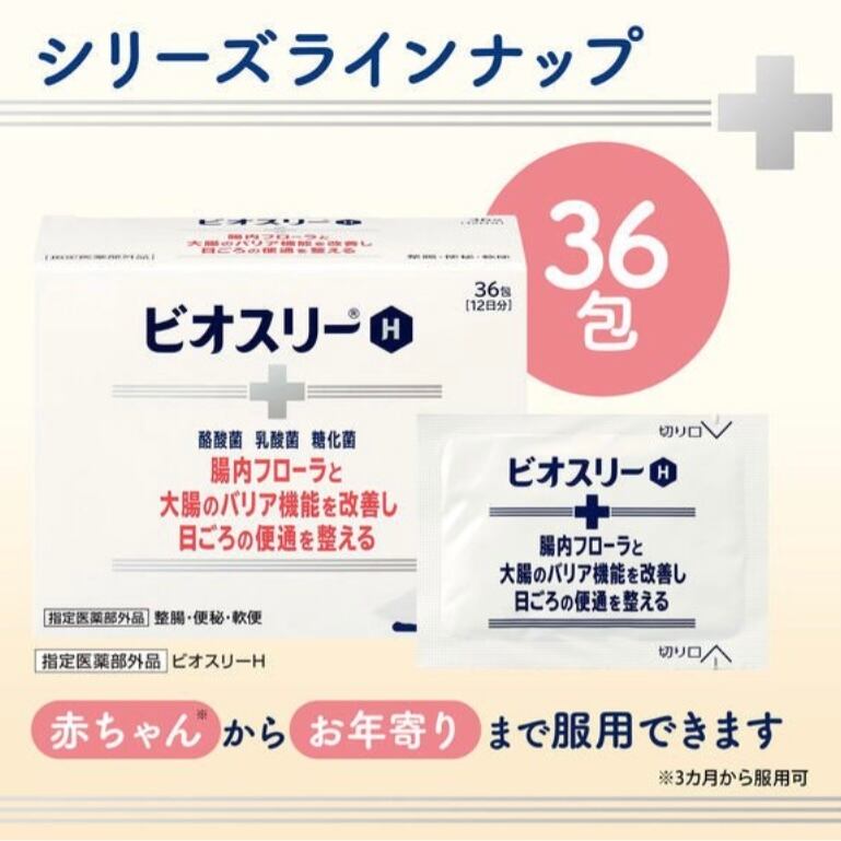 アリナミン製薬 ビオスリーH 36包 ★ 腸内フローラを改善、大腸のバリア機能を改善、生菌整腸剤で腸活!