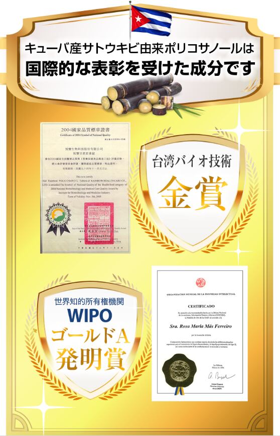 キューバ産サトウキビ由来ポリコサノール